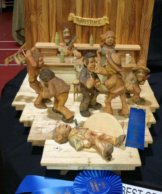 21 inches wide and 21inches length 13 inches height with 8 figures in the saloon